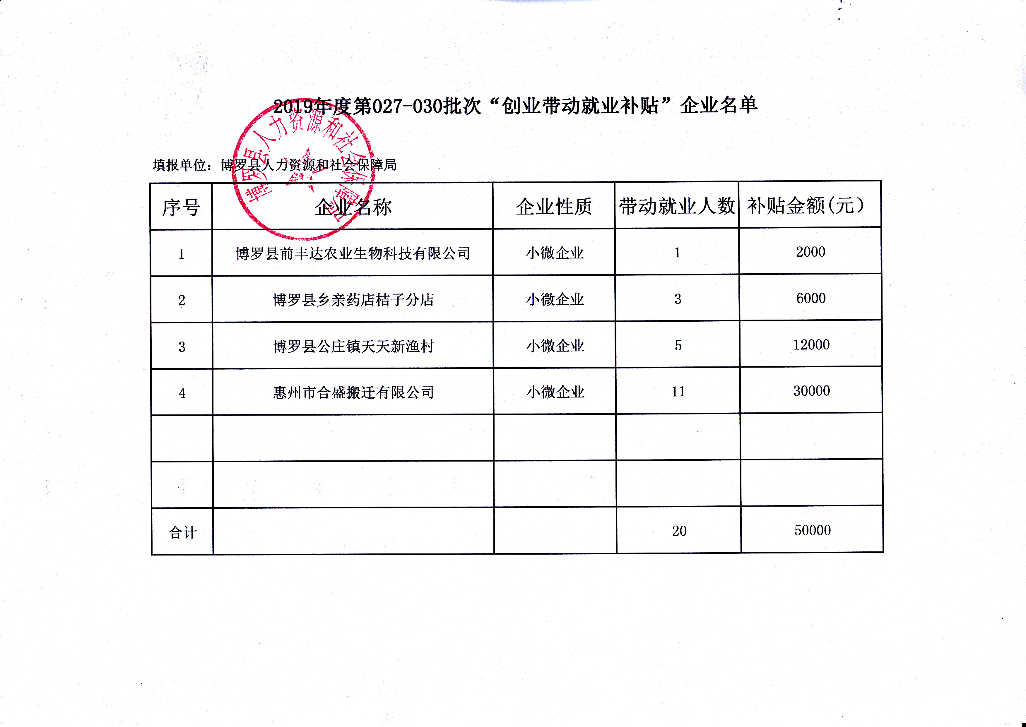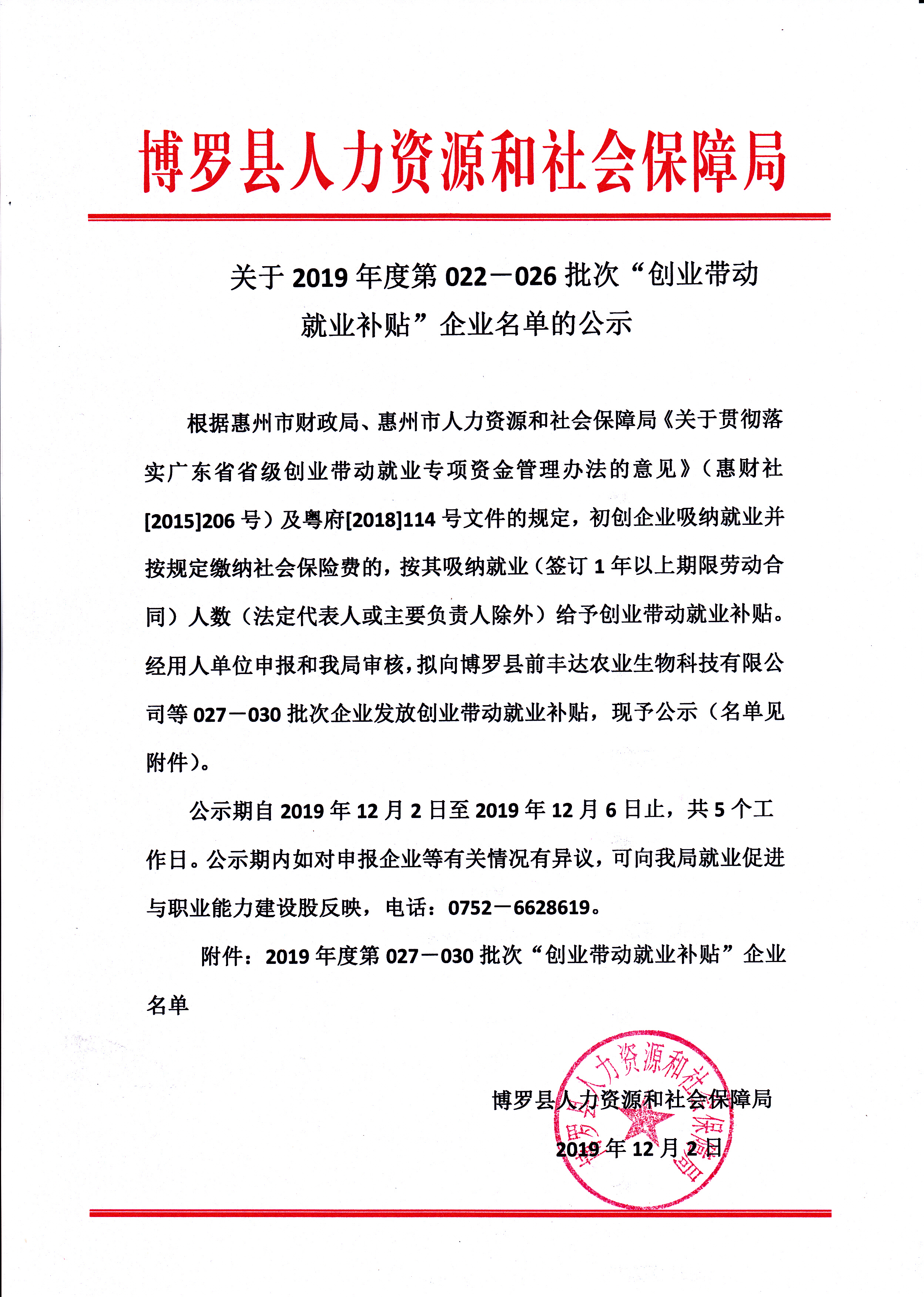 關(guān)于2019年度第022—026批次“創(chuàng)業(yè)帶動就業(yè)補(bǔ)貼”企業(yè)名單的公示