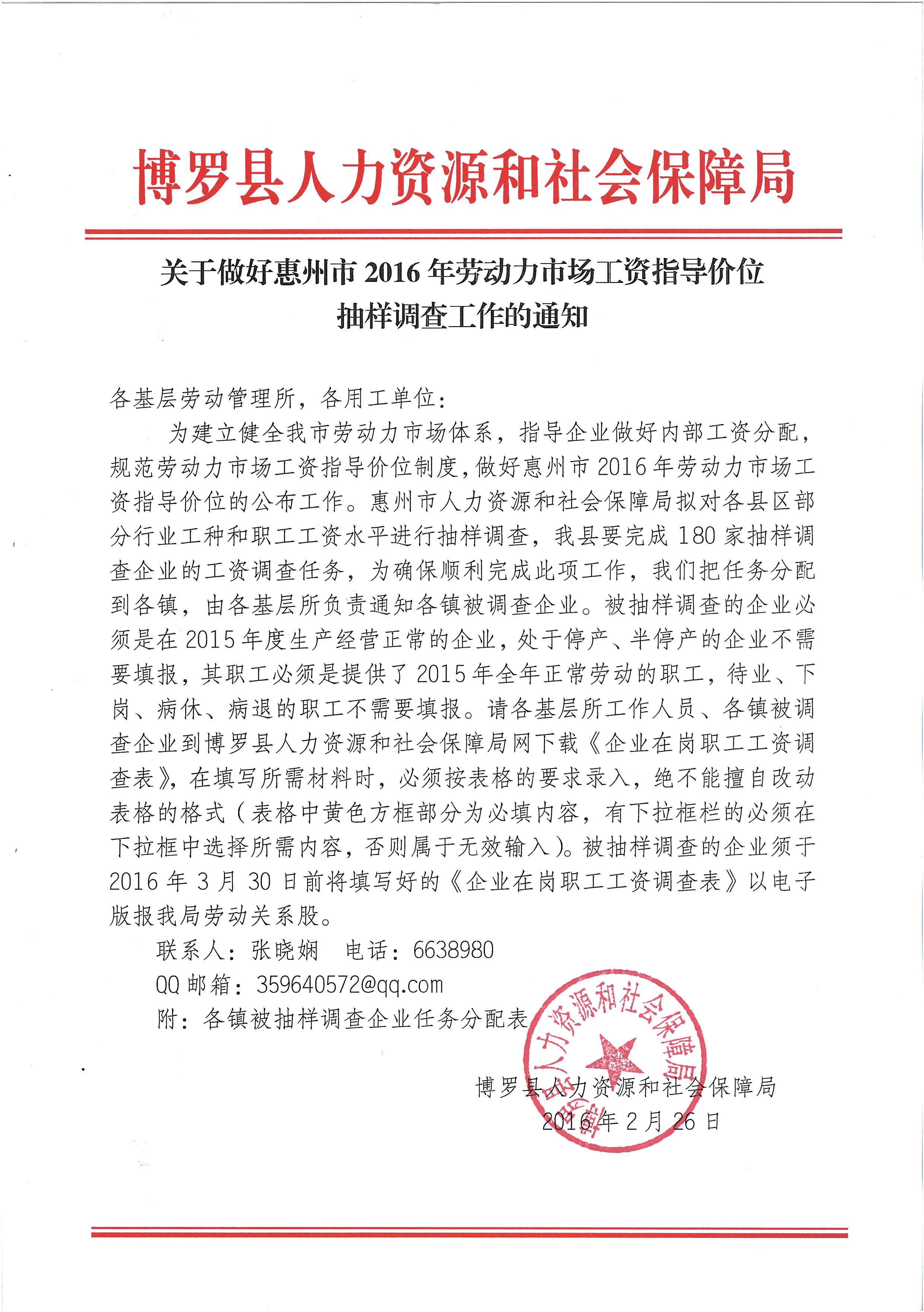 關于做好我市2016年人力資源市場工資指導價位抽樣調查工作的通知