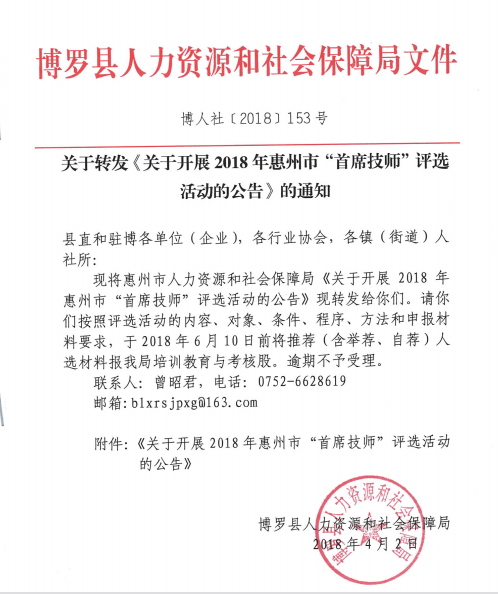 附件:關(guān)于開展2018年惠州市“首席技師”評選活動的公告