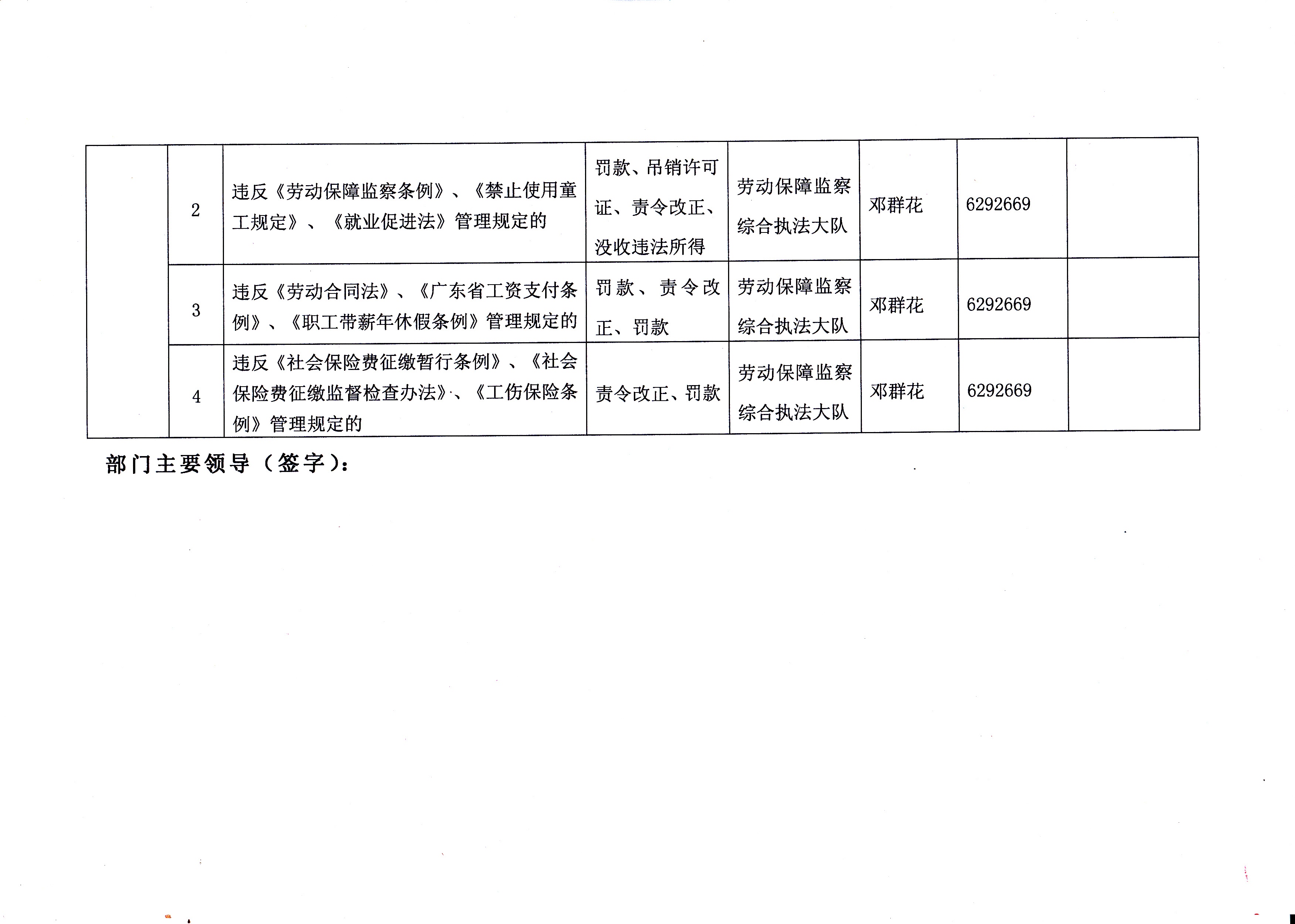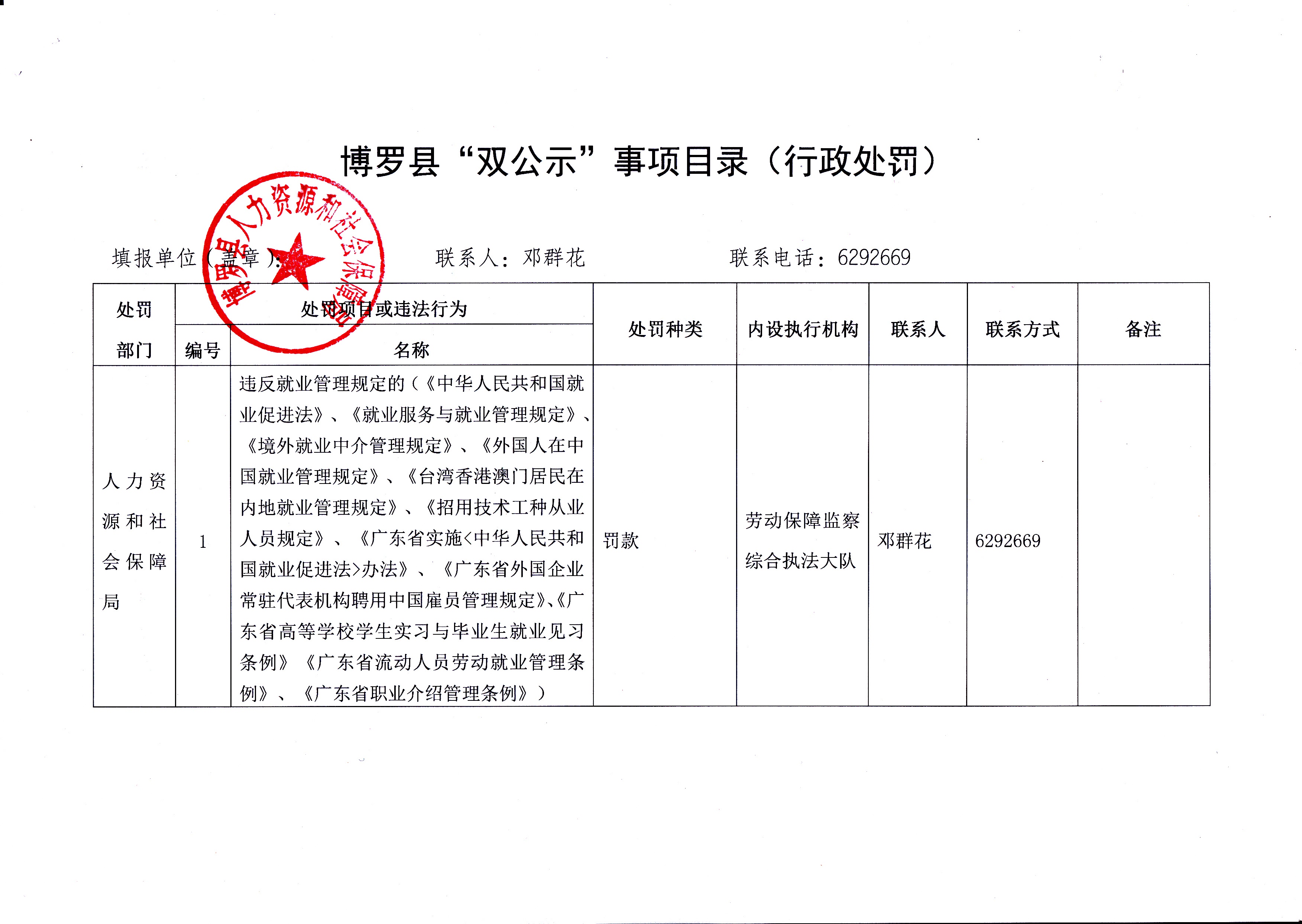 博羅縣人社局“雙公示”事項目錄(行政處罰)