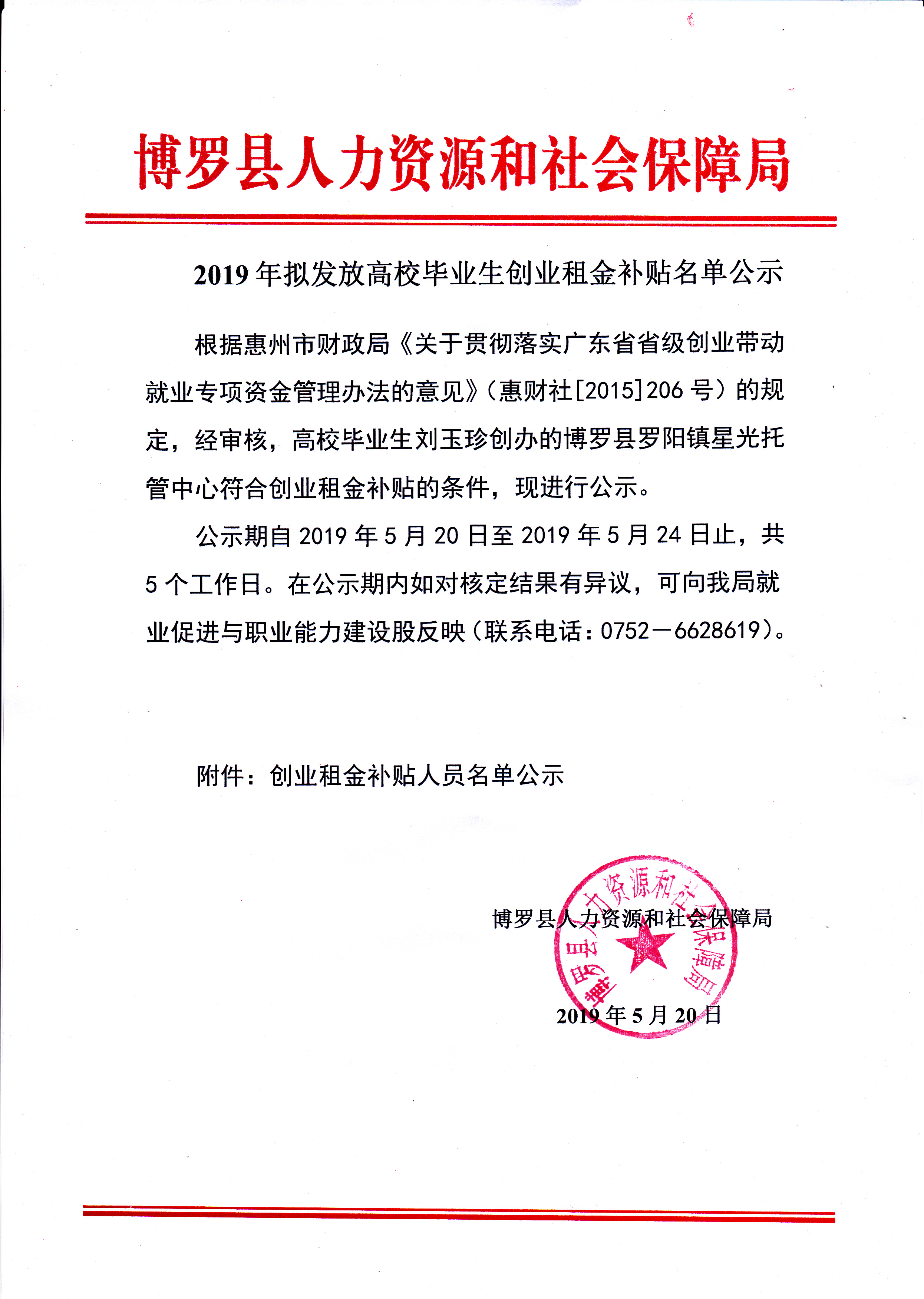 2019年擬發(fā)放高校畢業(yè)生創(chuàng)業(yè)租金補(bǔ)貼名單公示