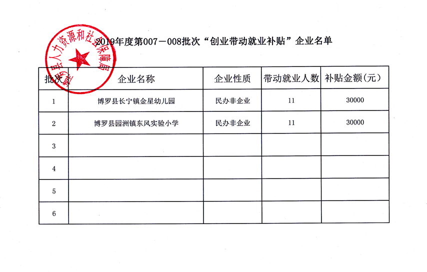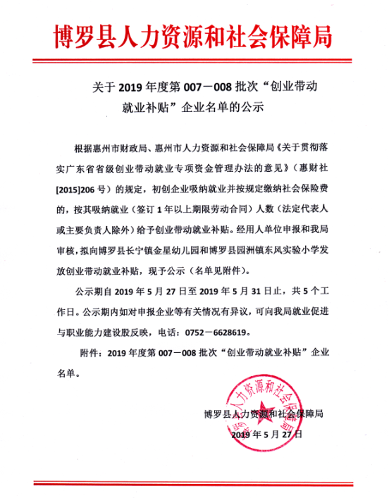 關于2019年度第007—008批次“創業帶動就業補貼”企業名單的公示