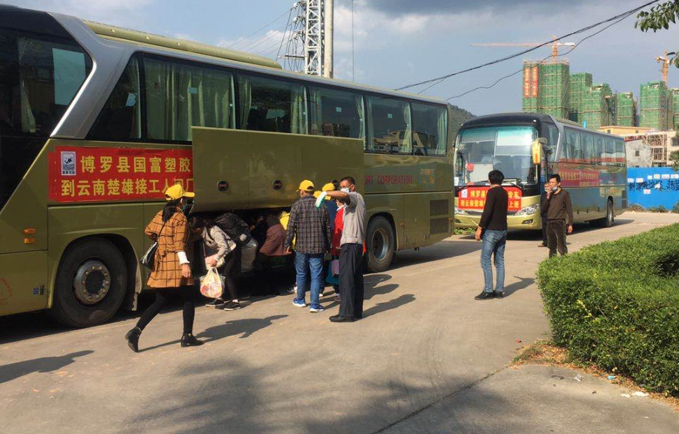 為有序引導務工人員返博返崗,緩解企業復產復工的用工需求,博羅縣出臺政策鼓勵企業“點對點”接回員工返崗。2月26日下午3時06分,博羅縣國富塑膠制品廠包的3輛大巴駛入廠門,65名員工從云南省楚雄彝族自治州安全抵達。這是博羅縣由企業自行包車赴外省接員工返崗的又一例典型。