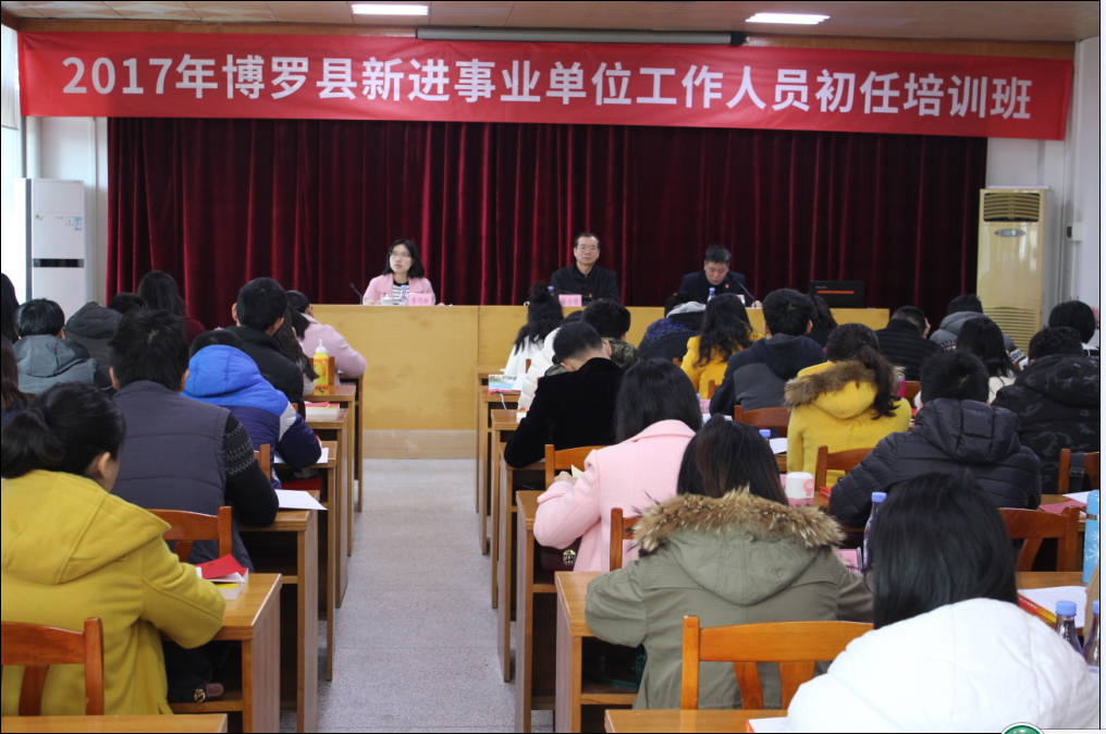 為提高新聘用事業(yè)單位工作人員的綜合素質和履職能力,強化新聘用事業(yè)單位工作人員為人民服務的公仆意識,2018年1月11至12日,博羅縣在縣委黨校舉辦2017年新進事業(yè)單位工作人員初任培訓班。2017年博羅縣新聘用的120多名事業(yè)單位工作人員參加了培訓。縣委黨校校長張小明、縣委組織部培訓科科長李巧玲、縣人社局副局長肖仲才參加了開班動員。肖仲才副局長作了開班動員講話。