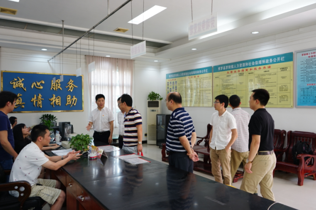 5月18日,省人社廳辦公室副主任程宏水帶領調研組,到博羅縣開展基層政務公開標準化規范化試點工作調研。博羅縣人社局局長黃惠明、博羅縣政府辦信息室主任羅樹娜、博羅縣人社局副局長鄧德明、惠州市社保局博羅分局副局長吳俊良陪同調研。