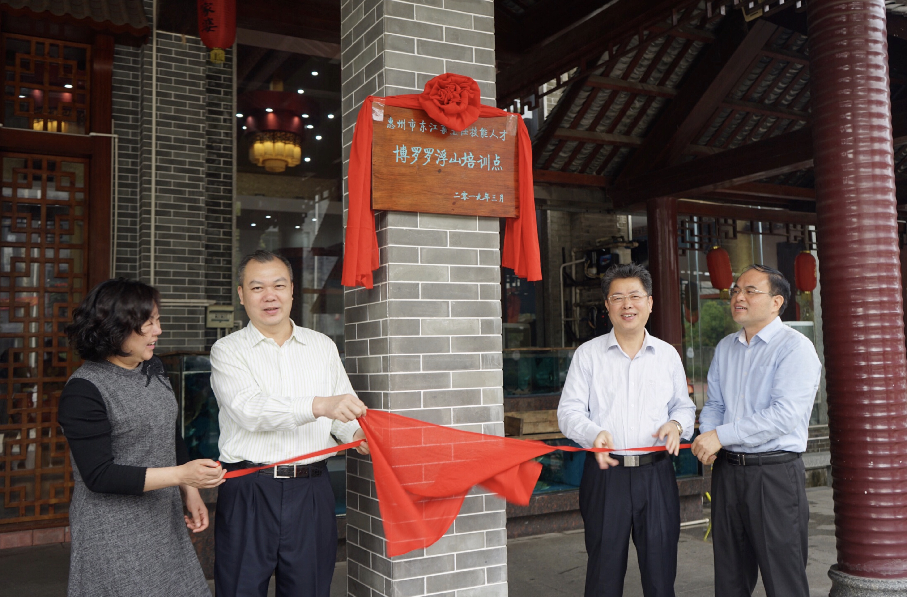 向陽局長一行首先來到長寧鎮祥崗背村惠州市東江菜烹飪技能人才博羅羅浮山培訓點客家樓,了解其經營狀況、培訓環境、東江菜菜品等,并鼓勵客家樓多創出特色美味的東江菜菜品,認真做好客家菜,宏揚客家飲食文化。向陽局長、藍權副局長還為惠州市東江菜烹飪技能人才博羅羅浮山培訓點揭牌。向陽局長要求:各相關科室要及時跟進各項工作,開拓創新、扎實推進,將“東江菜師傅”工程與鄉村振興結合起來,達到雙贏。