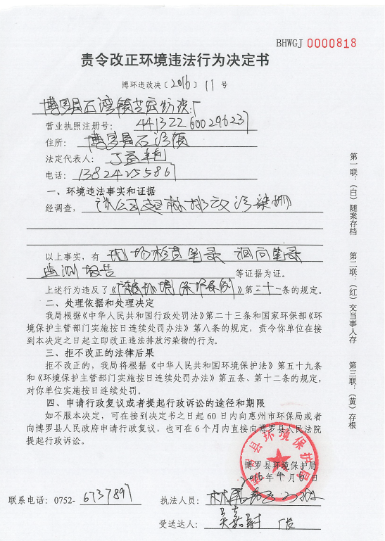 您現在所在的位置: 首頁 > 縣政府工作部門 > 惠州市生態環境局博羅分局 > 環保政務 > 環境執法