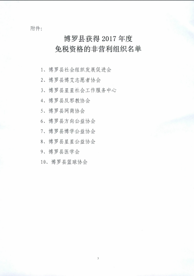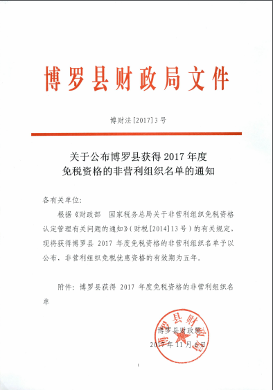 關于公布博羅縣獲得2017年度免稅資格的非營利組織名單的通知