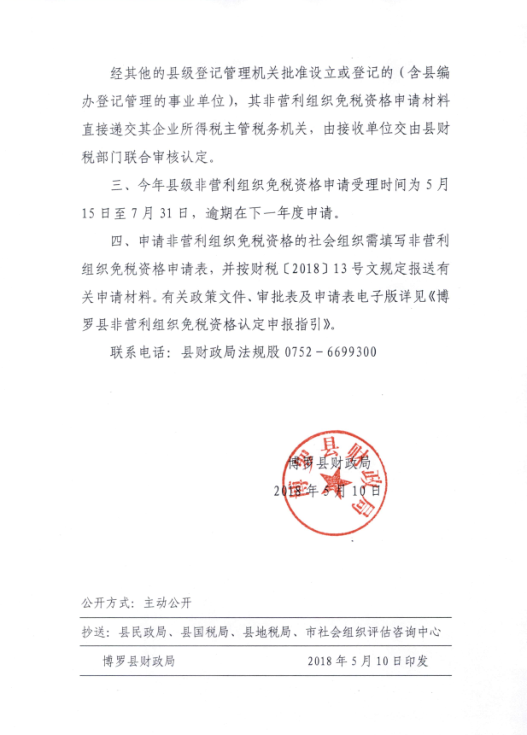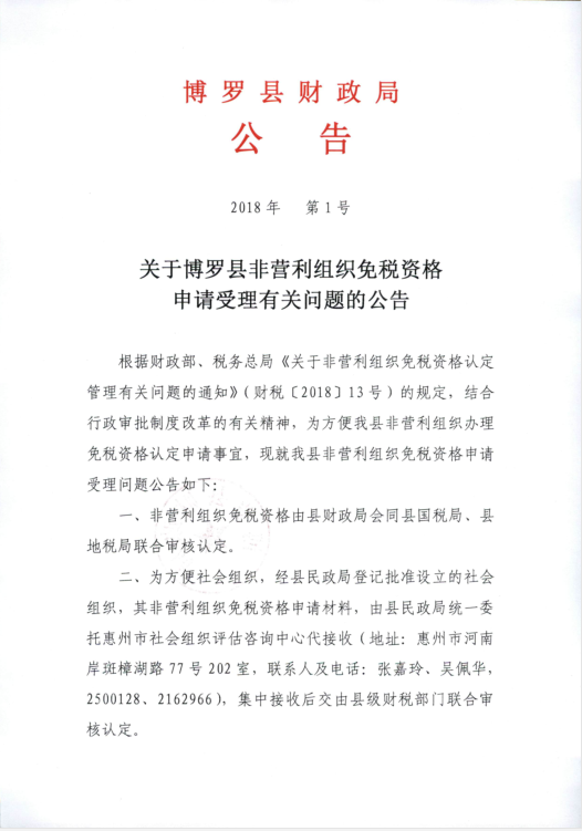 博羅縣縣級非營利組織2018年度免稅資格申請表