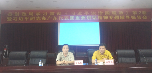 5月23日,博羅縣財(cái)政局召開學(xué)習(xí)貫徹《習(xí)近平談治國(guó)理政》第二卷暨習(xí)近平同志在廣東代表團(tuán)重要講話精神專題輔導(dǎo)報(bào)告會(huì),邀請(qǐng)惠州市委宣講團(tuán)成員、原惠州市委黨校常務(wù)副校長(zhǎng)黃石松同志作輔導(dǎo)報(bào)告。報(bào)告會(huì)由博羅縣財(cái)政局黨組書記、局長(zhǎng)林偉濤同志主持,博羅縣財(cái)政局全體干部職工參加。