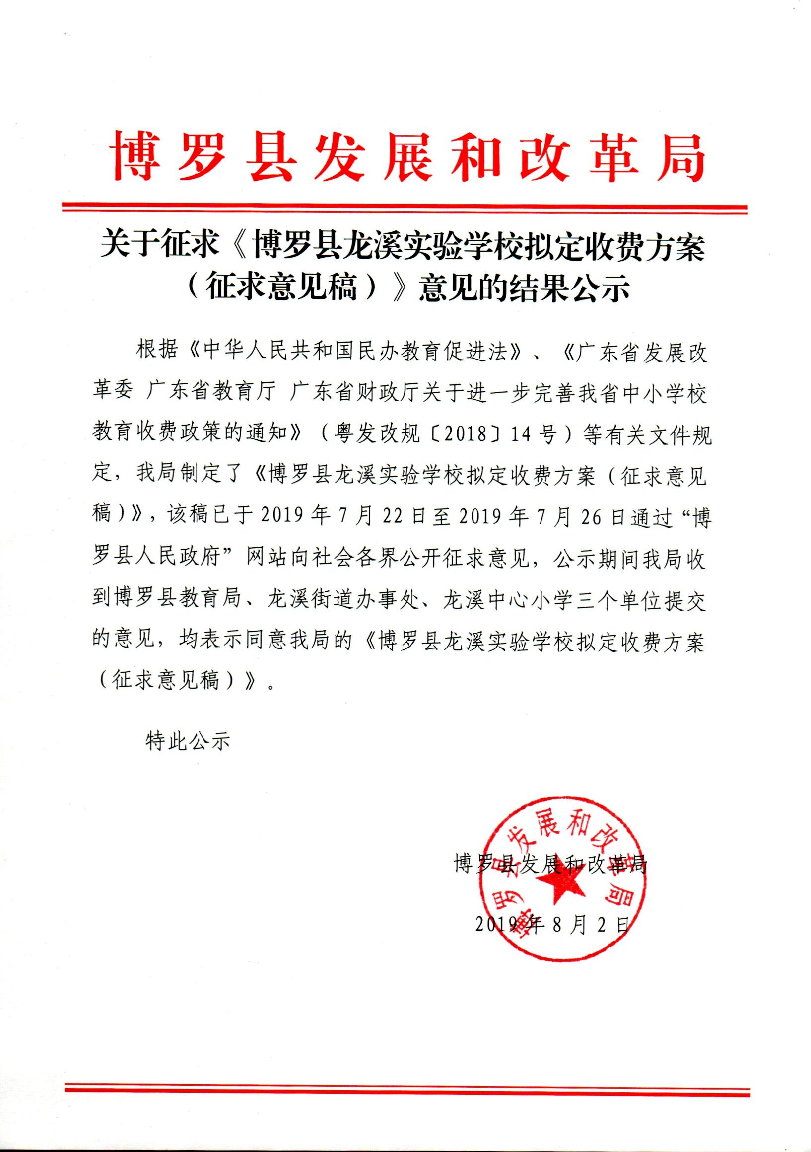 關于征求《博羅縣龍溪實驗學校擬定收費方案(征求意見稿)》意見的結果公示