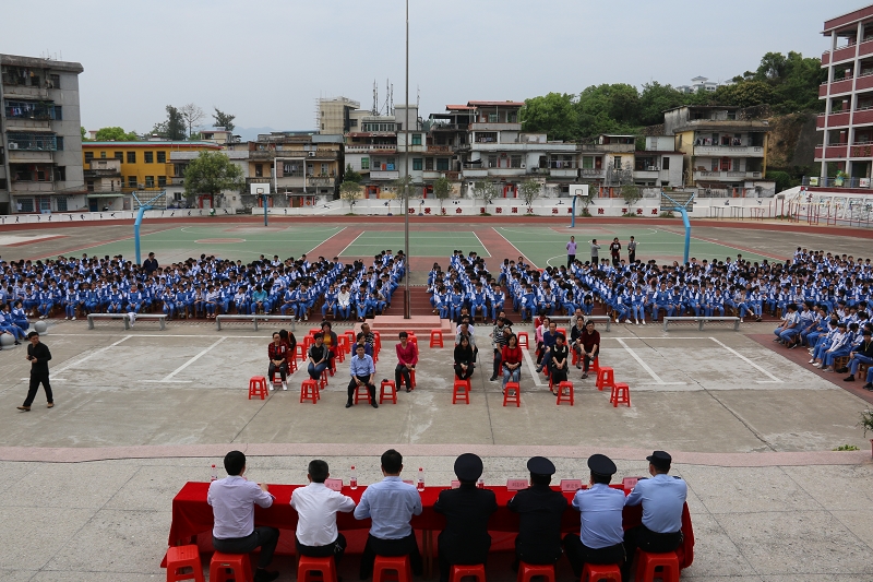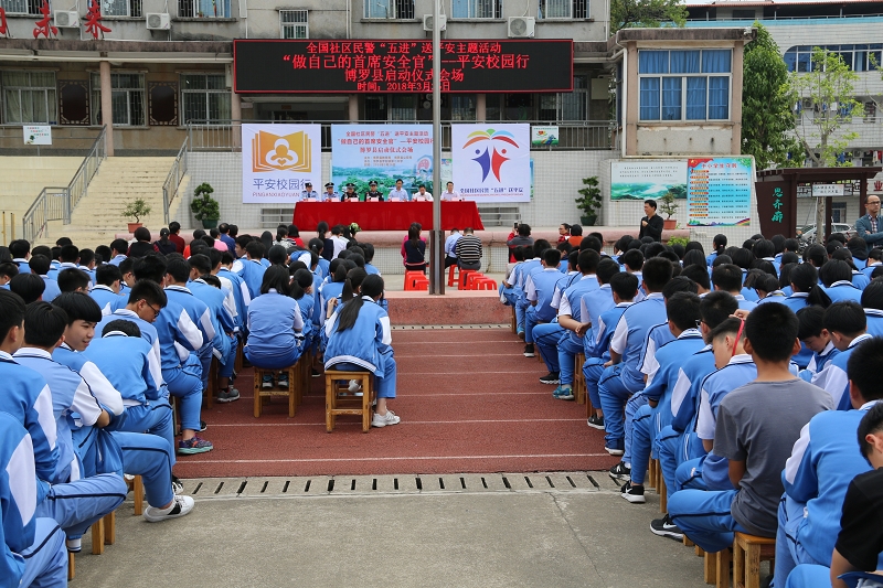 為進一步加強校園安全教育宣傳,提高師生法治意識、安全防范意識和自我防護能力,3月26日,縣公安局聯合縣教育局在羅陽二中舉行全國社區民警“五進”送平安系列主題宣傳活動之“做自己的首席安全官——平安校園行博羅縣主題活動”啟動儀式。縣公安局黨委委員、治安大隊大隊長翟維新,縣教育局黨委委員、副局長曾月明,羅陽二中校長謝太榮,縣公安局、教育局、羅陽二中等相關領導以及羅陽二中1300多名師生參加了此次活動。