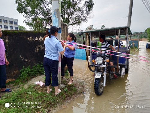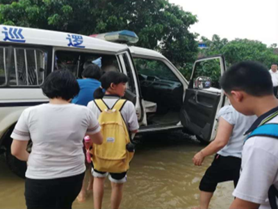 6月13日下午16:00時左右,受連續強降雨影響,公莊鎮往溪聯村路段出現大面積積水。當時恰好正值學校放學時間,博羅縣公安局公莊派出所路面巡邏隊員和駐村民警立即會同鎮干部前往現場,在積水地區拉設安全警戒線。在水位持續上漲時,駐村民警開動警車將小孩和家長全部平安護送過橋。