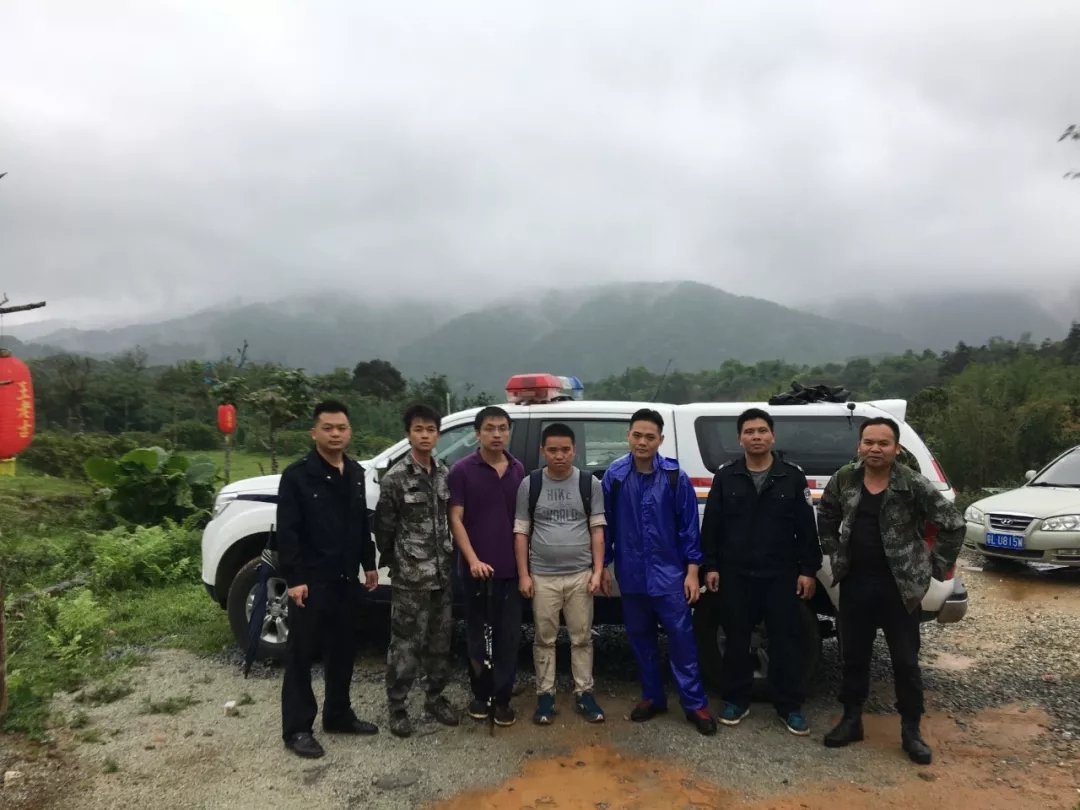 夜幕降臨,帶雨夾風(fēng),這些因素都給救援行動增加了困難。憑借以往的救援經(jīng)驗,羅浮山派出所救援隊伍分成兩隊,一隊由馬甘權(quán)帶領(lǐng),從羅浮山自然保護(hù)區(qū)的入口直奔分水嶺、飛云頂;另一隊由民警黃國平帶領(lǐng)治安聯(lián)防隊,從羅浮山朱明洞沿小路上山進(jìn)行搜尋。