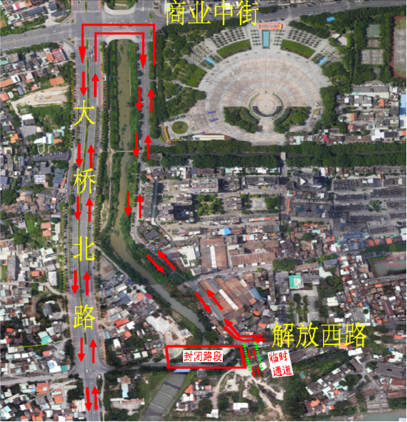 大橋北路至解放西路方向:大橋北路→商業中街→榕溪路→解放西路。