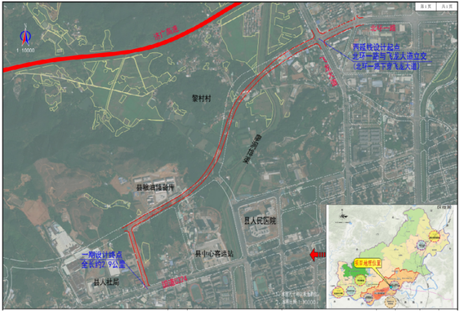 4、項目基本情況:博羅縣北環一路西延線建設工程(一期)位于位于羅陽街道主城區以西,東起現狀北環一路與飛龍大道交叉口,向西延伸跨越廖洞排渠,對現狀約800米博羅縣糧油儲備庫進庫道路進行改擴建,終點接入國道G324,路線全長約2.9公里。項目采用城市主干路兼一級公路標準,設計速度60km/h,雙向六車道規模,道路紅線寬度30/33米,其中K0+000~K2+355段約2.4公里道路紅線寬33米,K2+355~K2+900段約0.6公里道路紅線寬30米,采用瀝青混凝土路面。項目建設內容主要包括道路工程、隧道工程、橋涵工程、綠化工程、照明工程、交通工程等。項目總投資3.47億,建安費約2.21億。