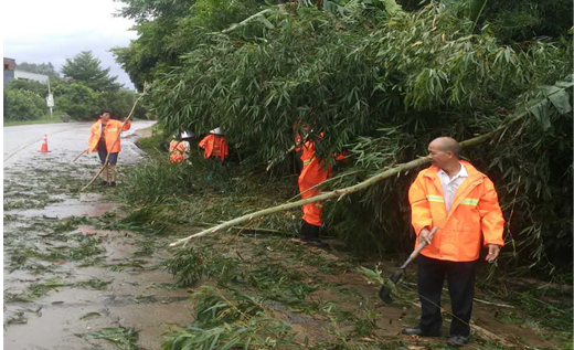 由于“妮妲”臺風的影響,給我縣帶來強降雨量及強風,導致我局地方公路管理站管養的縣鄉道路部分路段樹木吹倒損毀,但無出現水毀中斷及上、下邊坡塌方情況。為了保證道路的暢通,我局地方公路管理站的全體路政人員和道班工人,在2日凌晨就開始迅速地在全縣各縣鄉道路上冒著風、頂著雨,及時清理被臺風吹到的樹木和竹子,保證道路的暢通。