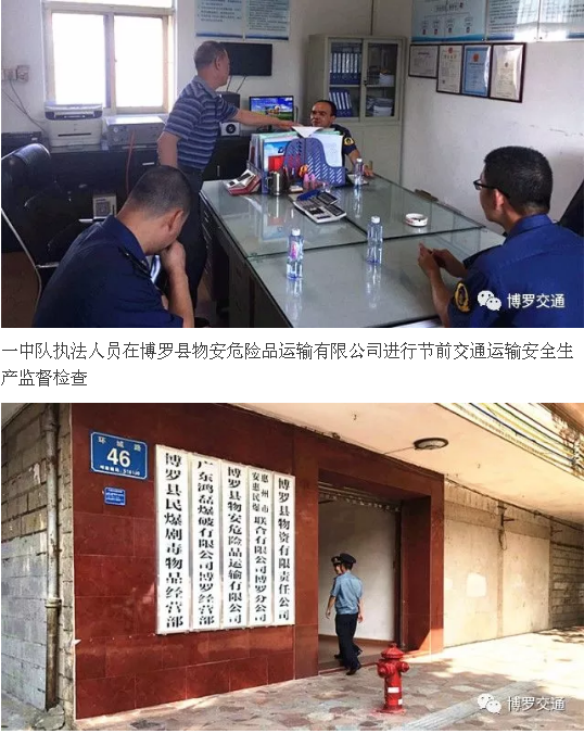 博羅縣交通運輸局陸運股、安全股相關工作人員于2017年9月11日至17日對轄區12家危貨運輸企業進行安全專項治理排查,強化危險貨物運輸作業、應急處置等環節管理要求,全面排查道路危險貨物運輸風險點。