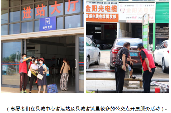 (志愿者們在縣城中心客運站開展志愿服務活動)