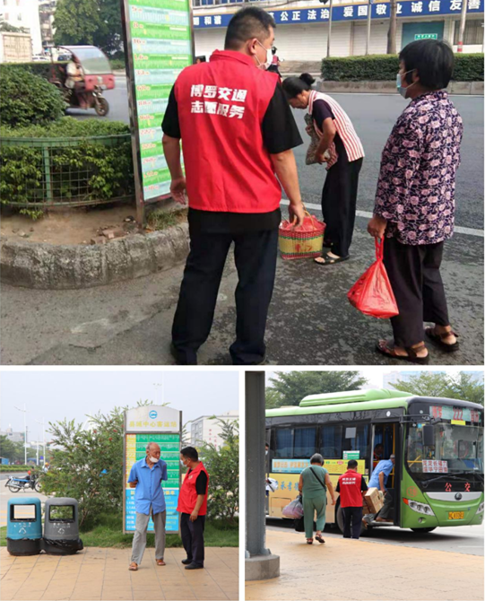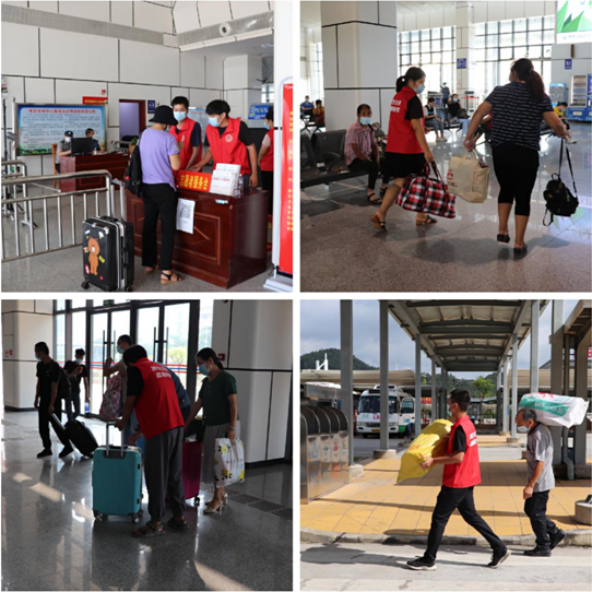 志愿者們在縣城中心客運站候車亭(室)、進出站口、安檢口、售票處及縣城客流量較多的6個公交點等容易發生乘客擁堵的地方引導乘客文明候車,按次序上下車和進出站,勸離街道、路口的違停車輛,積極維護交通秩序,避免發生擁堵,確保通道暢通;同時向乘客宣傳文明乘車理念,提醒乘客注意安全,耐心為旅客提供咨詢服務,主動幫助乘客搬運行李。
