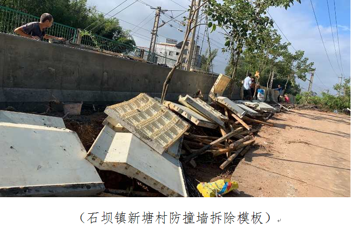 防撞墻建設因工序復雜、技術性強、人力需求大等因素,其施工進度對普鐵沿線整治工作的推進有著決定性的作用。石壩鎮新塘村施工點僅用了兩天時間從清雜草、扎鋼筋、釘模板、澆水泥到拆模板,硬是把防撞墻修筑任務攻克下來了。