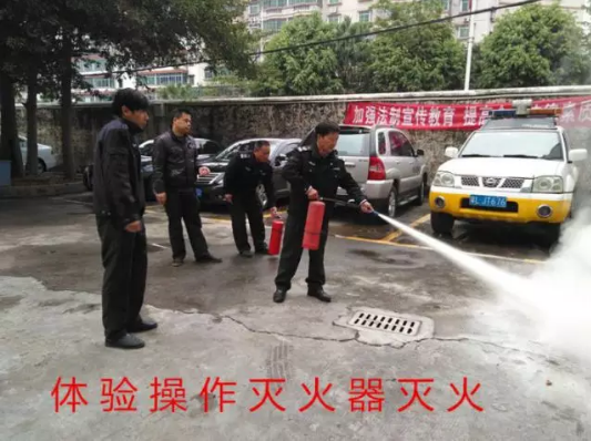 為了讓理論和實踐相結(jié)合,現(xiàn)場安排了安保人員親自體驗操作滅火器滅火的過程,使安保人員掌握了正確使用滅火器的方法。