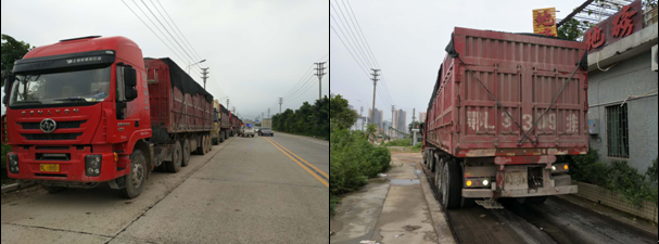 2018年9月7日下午約16時,縣公安交警大隊石灣中隊(執法人員2人)在博羅縣石灣鎮轄區進行巡邏管控,巡邏至石灣鎮滘源路路段時,發現該路段路邊停放10輛涉嫌超限超載的大貨車?,F場執法人員立即聯系石灣鎮鐵場派出所和博羅縣交通運輸局,兩部門迅速派出執法人員趕到現場,對停放的涉嫌超限超載大貨車進行檢查,經執法人員現場檢查發現,現場只有2輛貨車的司機,其他8輛貨車的司機均離開,逃避執法檢查。現場的公安、交通執法人員除向在場的司機做好治超政策法規宣傳外,還責令他們立即聯系離開的司機配合執法檢查。經現場執法人員反復做思想工作后,貨車司機全部回到車上接受檢查。經交通執法人員對該10輛車輛進行稱重,發現10輛車輛均存在嚴重超限超載的行為,違規車輛車貨總重分別為128.47噸、124.39噸、120.35噸、128.39噸、134.46噸、139.36噸、130.91噸、138.56噸、109.19噸及134.19噸,運輸貨物為石頭(9輛)和沙子(1輛),均為外省市籍車輛,貨物源頭均在江西省定南縣,目的地為佛山市(9輛)和東莞市(1輛)。公安交警部門對違章車輛處罰2000元和扣6分的處理,交通部門按規定監督車輛卸載貨物,有力地打擊了該路段運輸車輛超限超載行為。