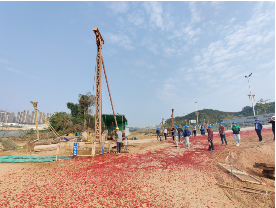 2021年2月28日下午,伴隨著沖錘的緩慢落下,博羅縣博中東江大橋工程項目首根樁基順利開鉆,標志著該項目建設進入了新階段。
