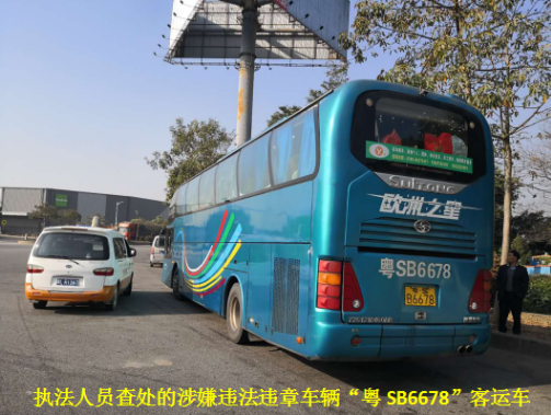 為規范博羅縣道路運輸市場秩序,打擊各種違法違規運輸行為,營造平安和諧快樂的春運氛圍,2019年1月23日上午10點,執法局第三中隊李文耀隊長一行3人到園洲鎮開展執法巡查。執法巡查中,執法人員在廣惠高速公路園洲出入口附近發現一輛東莞籍“粵SB6678”大客車停在路邊裝載行李。執法人員發現后立即對該車進行檢查,檢查中發現該車未能提供任何有效營運證件。執法人員立即通過廣東交通執法網進行核查,發現該車所屬東莞市羽和汽車租貨服務有限公司車輛,但是,在廣東省營運車輛數據庫內未查到該車輛登記記錄,該車司機承認其是租貨公司聘請,但無法提供營運證件等有效證件。經執法人員現場清點,該車共有旅客61名(含兒童2名),據現場旅客反映,其從汕尾市上車,經佛山市駛往四川省南充市和武勝縣等地。
