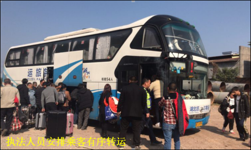 由于該車未能提供任何有效的營運證件,執法人員將該車及旅客帶回第三中隊,并將情況上報至縣春運辦。收到該情況后,縣春運辦(縣交通運輸局)領導高度重視,積極安排工作部署,要求執法局、交管總站等部門做好旅客穩控和轉運工作,執法局、交管總站等部門領導先后到達三中隊開展處置工作。該客車到達三中隊后,部分旅客擔心回家受阻,加上回家心切,情緒較為激動,極個別旅客私自跑到廣汕公路上攔路。三中隊執法人員、縣春運辦及長寧運輸所等部門工作人員耐心細致地做好旅客的思想工作,保證旅客平安到家,才使旅客情緒逐漸平息。經執法人員與司機及車主協調,該車車主同意立即調派一輛合法車輛轉運旅客。轉運期間(已達中午時間),執法人員給每位旅客送上盒飯和瓶裝水,并安排旅客在中隊辦公場所休息。約14點30分,轉運車輛到達,執法人員組織旅客有序上車,現場轉運旅客54人(含兒童2名),另7人由車主安置在縣城居住,于24日到博羅車站坐途經博羅縣城的班車回四川,轉運工作順利完成,我局將依法依規嚴肅處理該違章車輛。