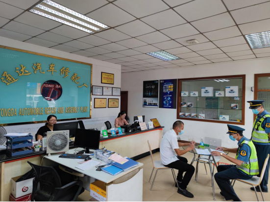 按照定點管理的原則,跨境貨車僅限于在已選定的定點管理維修廠進行維修,福田鎮(zhèn)通達修配廠作為我縣定點管理維修廠,其內(nèi)部區(qū)域設置與防疫措施也處于執(zhí)法人員的嚴密監(jiān)控之下。在檢查期間,執(zhí)法人員發(fā)現(xiàn)維修廠的專用休息區(qū)未在明顯位置張貼設置服務電話,督促該維修廠負責人作出整改。