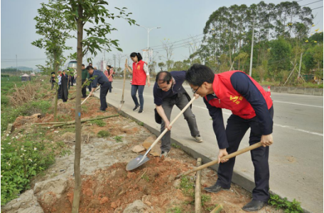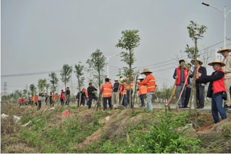 一到植樹現(xiàn)場(chǎng),大家熱情高漲、干勁十足。三人一組,五人一群,同心協(xié)力,一起揮鍬鏟土、扶苗填坑、踩土定植,合力種下一株株樹苗。衣服被汗水浸濕了,衣服鞋子全被泥土弄臟了,絲毫沒(méi)有影響到大家勞動(dòng)的熱情和干勁。經(jīng)過(guò)2小時(shí)的努力,中部通道道路兩側(cè)佇立起一排整齊有序的香樟樹,200多棵樹苗在初春的陽(yáng)光下見證了大家的汗水和辛勤付出。