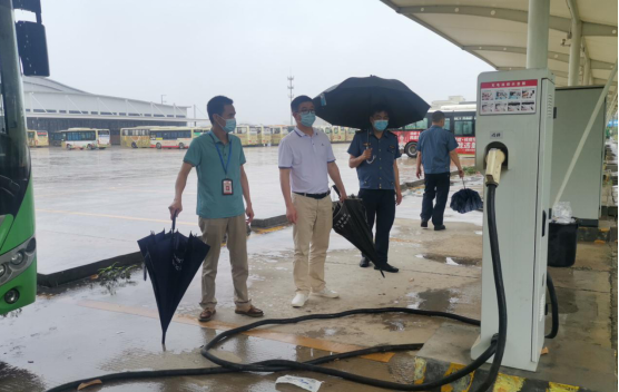 運管中心主任戴輝雄帶隊前往汽運公司、聯運公司、城鄉公司進行防洪防汛檢查,重點對電動公交車、充電樁等進行安全檢查,要求企業加強值班值守,密切留意路況車況,對于路況不佳的班線,要及時采取停運措施,保障群眾出行安全。