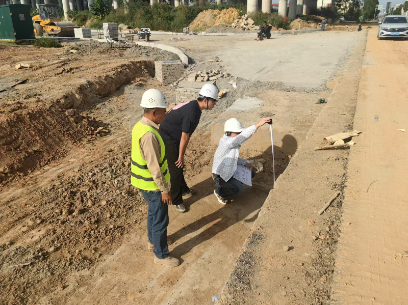 2024年10月23日下午,規建中心與第三方審計工作人員到泰美鎮金龍大道(板橋工業區段)升級改造工程檢查項目建設情況,對照圖紙現場進行核查,倒查施工過程資料,對現場發現問題留底并交代進行整改,施工單位、監理單位工作人員陪同。