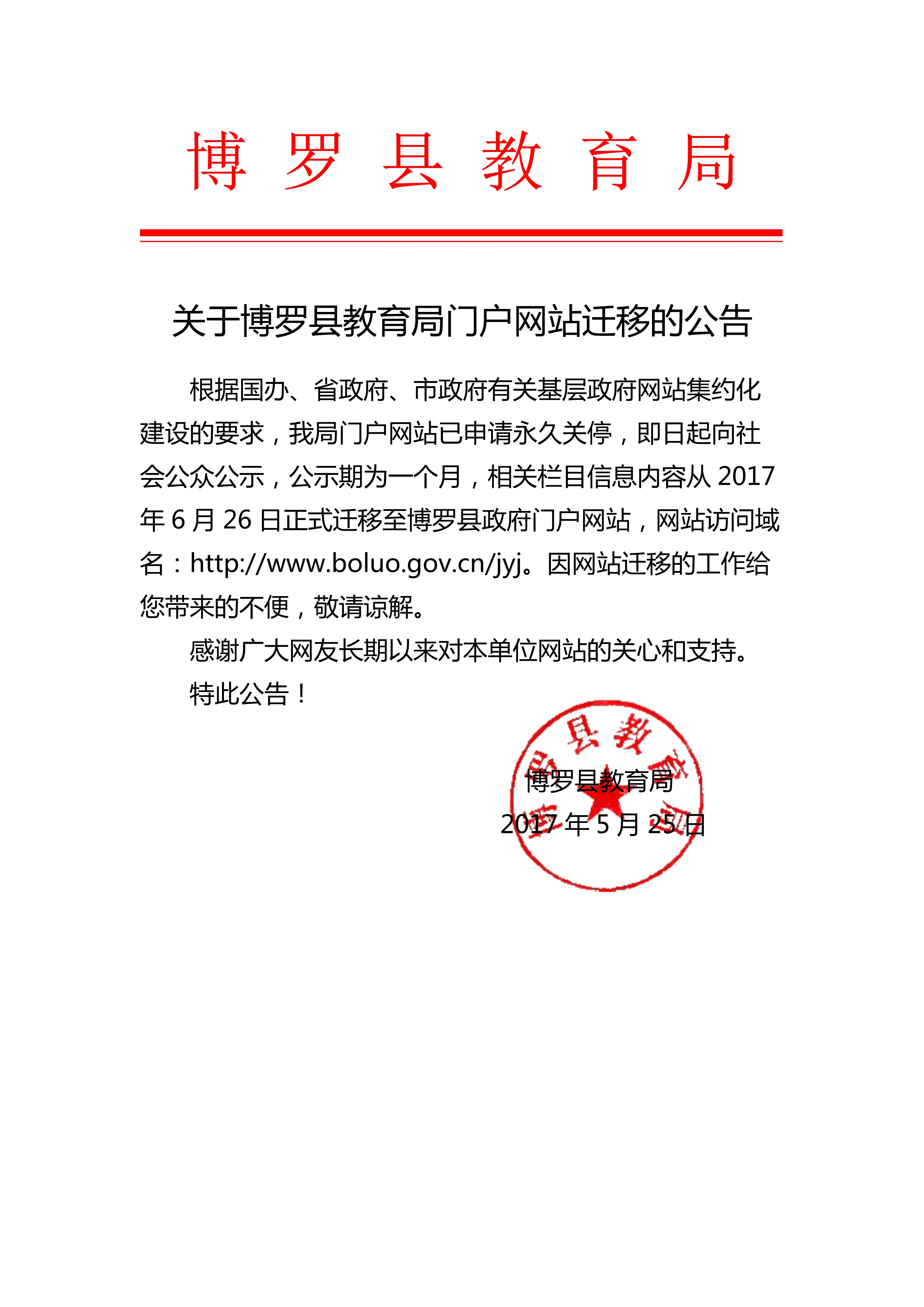 關于博羅縣教育局門戶網站遷移的公告