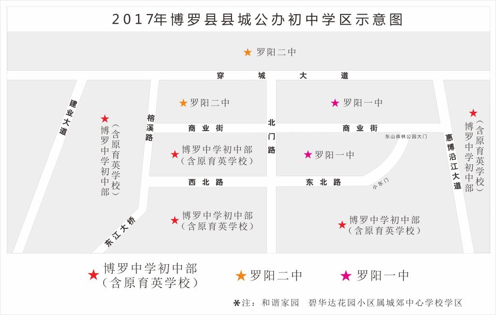 2017年博羅縣縣城公辦初中學區示意圖