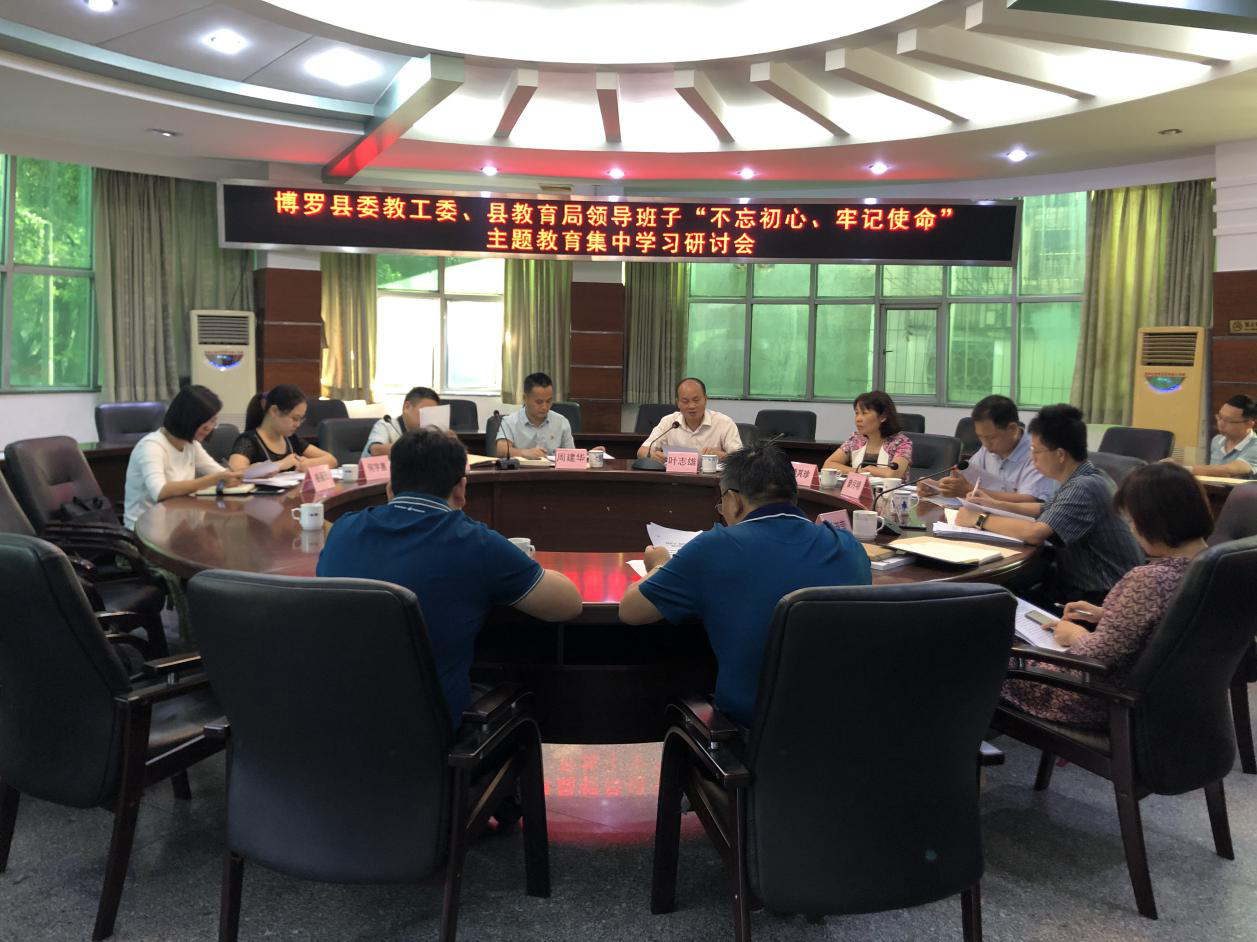 2019年9月23日上午,縣委教工委、縣教育局領導班子“不忘初心 、牢記使命”主題教育集中學習研討班啟動儀式在局機關3號會議室舉行??h委主題教育第九指導組成員何宇惠、駱麗云,縣委教工委、縣教育局班子成員,縣教育局各股室負責人,縣教育系統“不忘初心、牢記使命”主題教育領導小組辦公室成員參加。縣委教工委書記、局黨組書記、局長葉志雄主持啟動儀式并做主題發言,縣委教工委專職副書記賴其珍作主題發言,局黨組其他成員作交流發言。