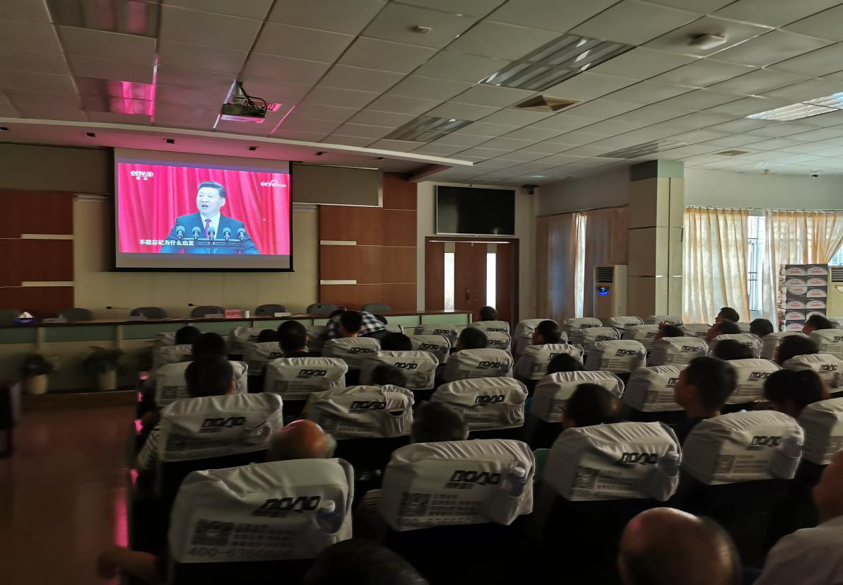 與會人員集體觀看了專題紀錄片《不忘初心、繼續前進》,集體接受了一堂鮮活的黨史學習教育課。(秘書室 呂斌供稿)