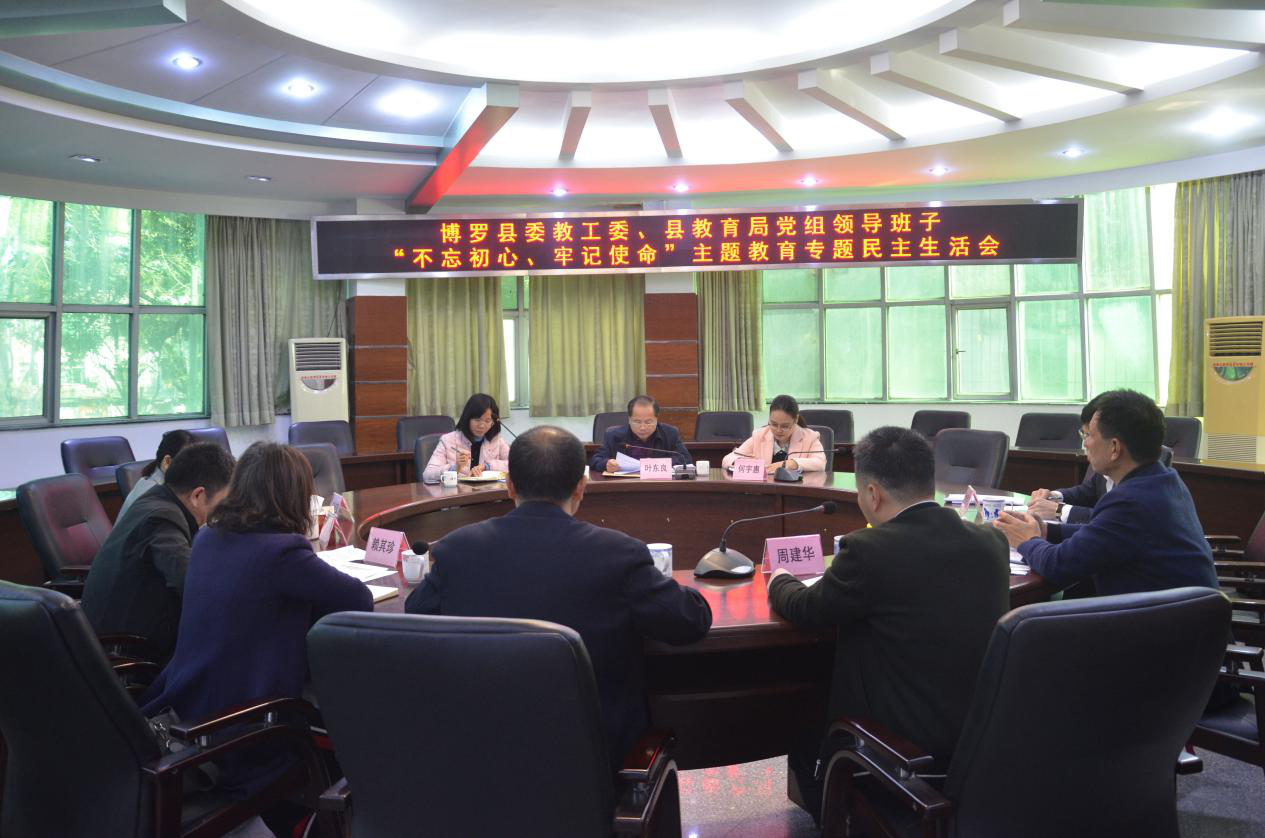 12月6日,博羅縣委教工委、縣教育局黨組領導班子“不忘初心、牢記使命”主題教育專題民主生活會在局機關一樓3號會議室召開。縣委教工委書記、局黨組書記、局長葉志雄主持會議,縣委主題教育第九指導組組長葉東良出席會議并作點評講話。