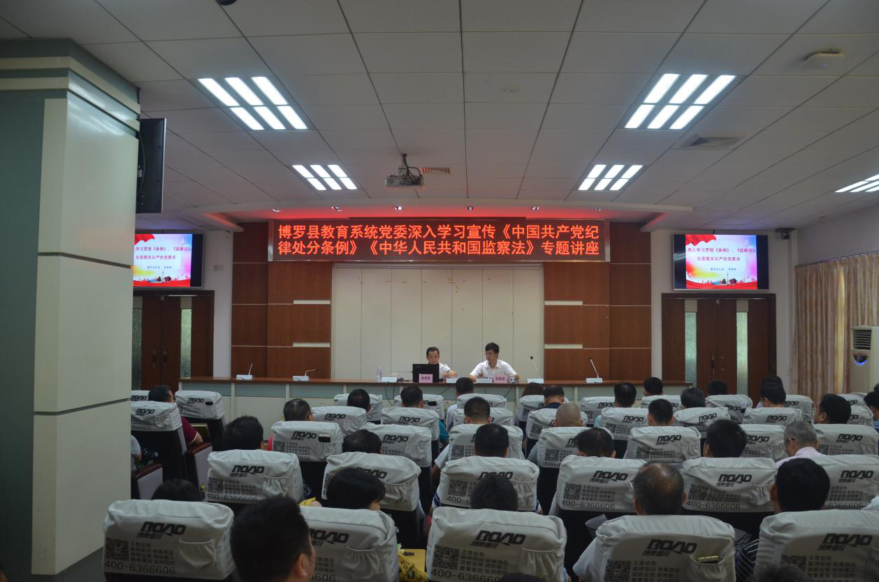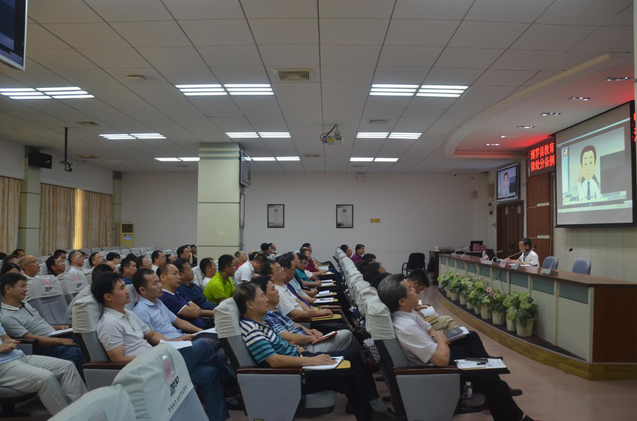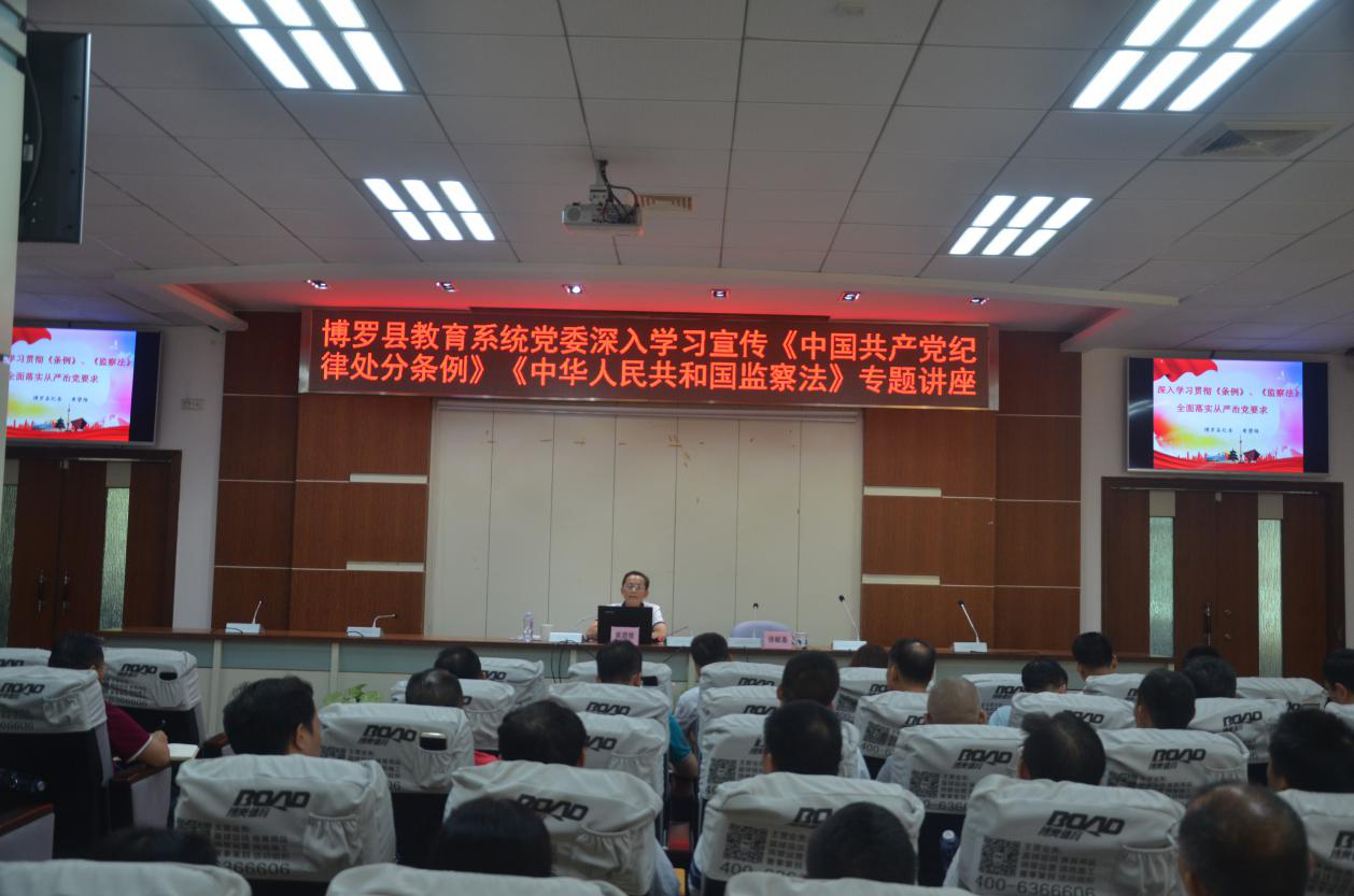 為貫徹落實縣紀委有關文件精神,進一步增強黨員干部廉潔從政意識,9月30日,縣教育系統黨委特邀縣紀委駐教育系統紀檢組組長黃碧維同志就學習宣傳《中國共產黨紀律處分條例》《中華人民共和國監察法》作題為《深入學習貫徹<條例><監察法,落實全面從嚴治黨要求>》的專題講座。講座由縣教育局副局長徐獻基同志主持,縣教育局全體干部職工、縣直各學校行政人員共170余人參加。