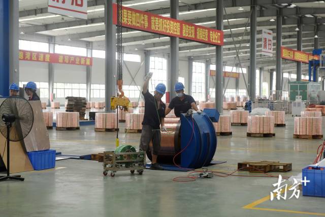 在位于博羅沿東江經濟帶的正威(惠州)新材料產業園,一條年產能達25萬噸的新生產線正加速建設。這條連鑄連軋生產線設備由德國西馬克梅爾公司研發制造,安裝于該產業園一期生產車間,可生產出頭發絲十分之一粗細的納米銅線,滿足高端市場需求。該生產線建成達產后,預計年產值可達175億元。