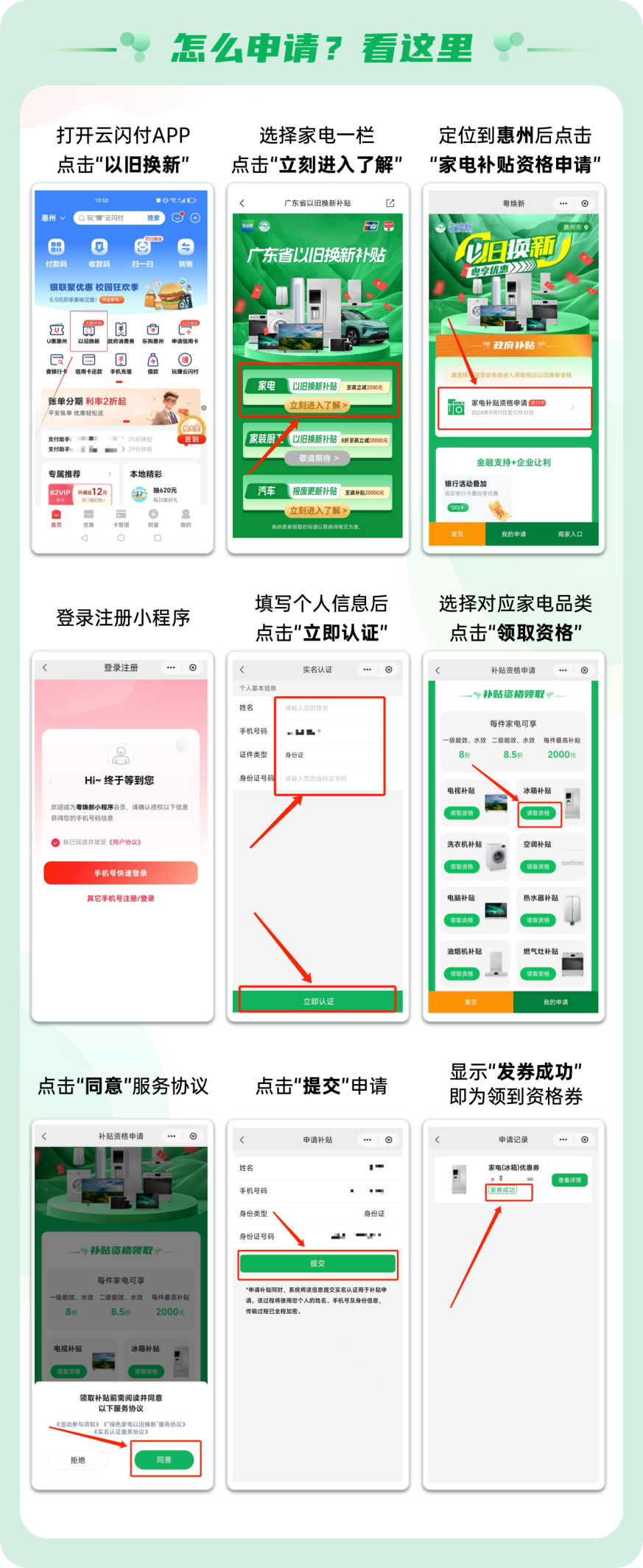 消費者在云閃付、微信、支付寶等APP進入“廣東粵煥新以舊換新公共服務平臺”申領活動范圍家電品類補貼資格券。