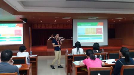 培訓會上,阿里巴巴農村淘寶區域負責人吳榮由經理為大家詳細介紹了阿里巴巴農村淘寶業務的意義、目標以及實現的方法途徑。為推進農村淘寶項目,阿里巴巴集團攜各地方政府推出了“千縣萬村計劃”:在三至五年內投資100億元,建立1000個縣級服務中心和10萬個村級服務站。吳經理在會上透露:2016年,博羅縣計劃建立60個農村淘寶村級服務站,由阿里配備專屬的硬件和宣傳物料,提供專屬物流,為村民提供代購等便民服務后,享受由商家提供的傭金。最后吳經理熱情呼吁:博羅本地有激情、有夢想、有責任心、有創業思維,志愿扎根農村、服務農村的有志人士加入農村淘服務事業。