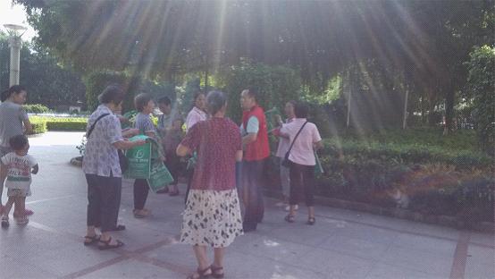 在消防主題公園的入口處,陳列了節能知識宣傳海報、節能宣傳口號小扇子、環保購物袋等宣傳資料,吸引了過往群眾駐足觀看和踴躍領取。志愿者們精神飽滿、工作熱情,積極主動地將宣傳資料派發給路人。對群眾關心咨詢的問題,志愿者們在現場悉心解答,并耐心地為大家講解節能政策和措施,認真傳授日常節電小常識、減少使用一次性物品等節能減排小竅門,普及節能知識和綠色的生活方式及消費模式。