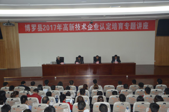 2017年2月17日下午,“2017年博羅縣高新技術企業認定培育專題講座”在博羅縣文化中心舉行,出席講座的領導有博羅縣政府常務副縣長段致輝、市科技局高新科科長陳洪、縣科工信局局長翟雄偉以及省高新技術企業專家庫評審專家、廣東工業大學機電工程學院教授袁清珂,共有200多家企業負責人參加了專題講座輔導。