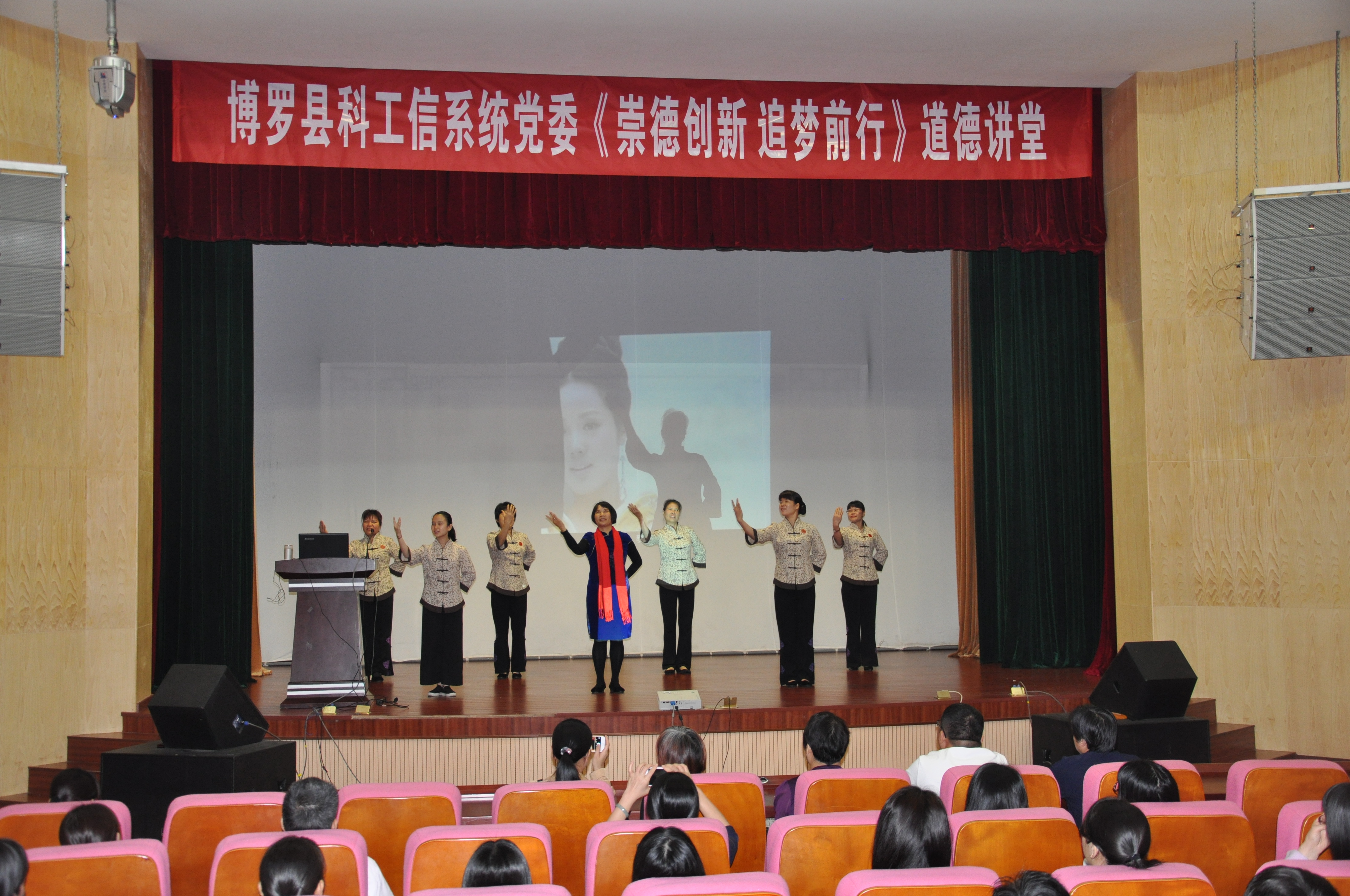 4月25日下午,博羅縣科工信系統黨委在縣文化中心道德講堂總堂開展以“崇德創新 追夢前行”為主題的道德講堂活動。博羅縣科工信系統黨委副書記蔡鳳慈,博羅縣質監局副局長陳寧及該系統干部職工共120多人參加了此次活動。