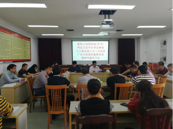 3月29日上午,博羅縣科工信局在九樓會議室召開黨組中心組(擴大)會議,傳達學習貫徹習近平總書記在參加十三屆全國人大一次會議廣東代表團審議時的重要講話精神。局黨組書記、局長翟雄偉主持,局中層以上干部參加學習。會上由黨委副書記蔡鳳慈傳達學習習近平總書記參加十三屆全國人大一次會議廣東代表團審議時的重要講話精神和全國“兩會”、惠州市委常委會會議精神及市委有關《通知》精神、縣委常委會(擴大)會精神及《中共博羅縣委關于堅決維護以習近平同志為核心的黨中央權威和集中統一領導的規定》、《博羅縣貫徹落實中央八項規定精神實施辦法》等內容。
