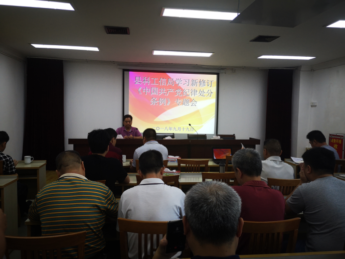 9月19日,博羅縣科工信局在局會議室召開學習新修訂《中國共產黨紀律處分條例》專題輔導會,會議由黨組書記、局長翟雄偉主持,局機關全體干部職工參加了會議。