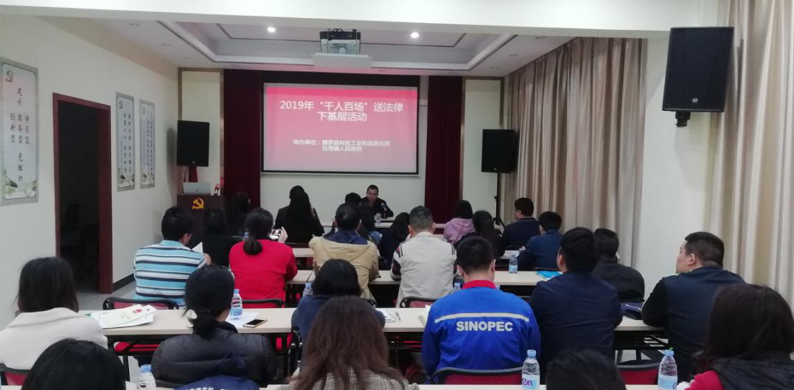 為全面貫徹落實習近平新時代中國特色社會主義思想、黨的十九大精神以及習近平總書記視察廣東重要講話精神,貫徹落實全面依法治國新理念新思想新戰略,加強公共法律服務體系建設,深化法制宣傳教育工作,我局根據縣普法辦《關于印發<博羅縣2019年“千人百場”送法律服務下基層活動方案>的通知》(博普電〔2019〕2號)的有關要求,聯合石灣鎮人民政府于3月5日上午在石灣科技產業園黨群服務中心開展2019年“千人百場”送法律下基層法治宣傳活動。縣科工信局副局長李偉光同志、鎮委員孔慶林同志以及科技產業園50多名企業代表參加了活動。