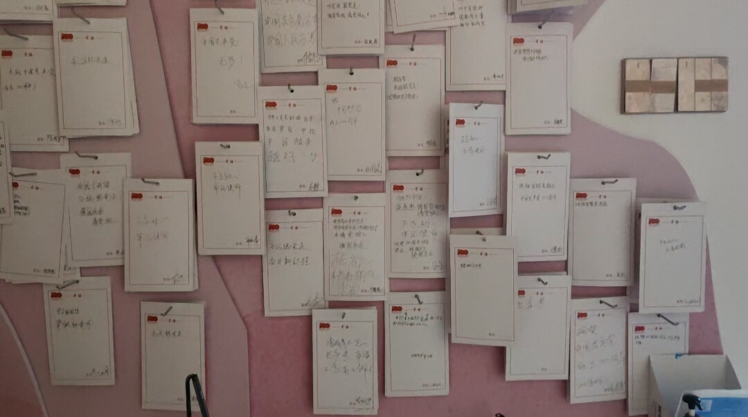 “請黨放心,強國有我”,心愿墻下許心愿。在重溫入黨誓詞后,大家更加堅定了當初入黨的信念,到心愿墻下書寫了對祖國的祝愿。